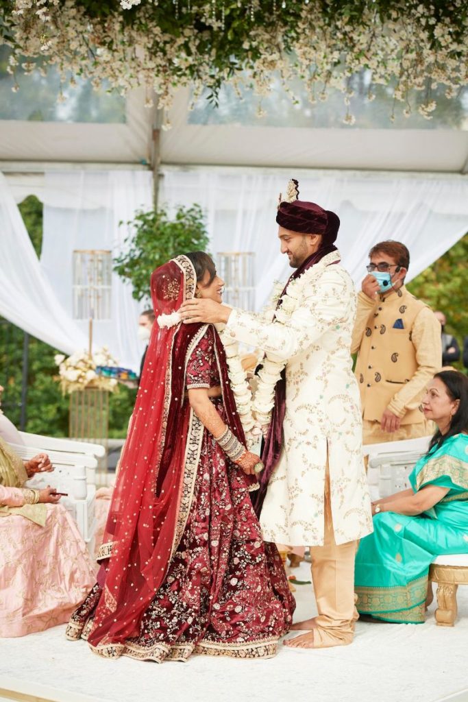 This tented fall Indian wedding allowed the bride and groom to celebrate with loved ones, with a little extra distance.