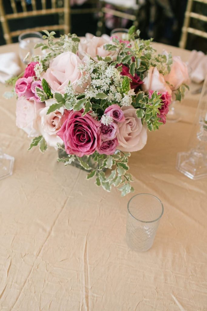 A festive Kashmiri & Iranian ceremony had a luxurious mandap with mauve petal curtains & pillars wrapped in ombré roses. The bride’s bracelet bouquet accents perfectly a fairytale romance.